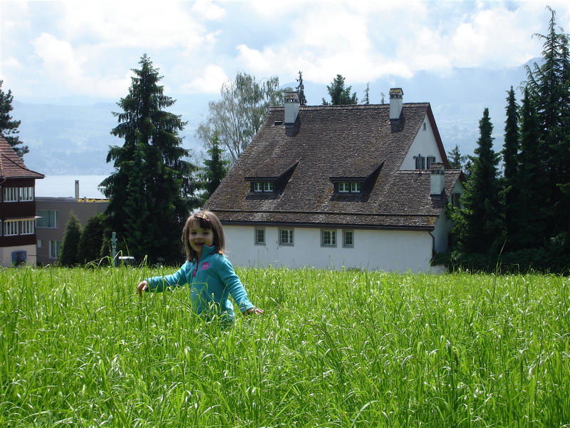 – Things like how nice people around here can be. I hauled myself and the girls to the other side of Zurich the other day and had two very nice encounters. The first was when we were waiting to get on the bus – I was trying to stuff some things in the pocket under the stroller when I noticed that the bus was coming – so I began to frantically stuff things in there so I could manage to get the stroller and a toddler loaded on the bus before it pulled away. Well an older lady was also waiting for the bus. She didn’t speak english but she managed to ask if I was getting on that bus that was coming down the road and I managed to say yes – or ya. She grabbed a few of the random things that were lying on the ground waiting to be stuffed into the stroller – a raincoat, a stuffed turtle and another toy of some sort. I was able to make it onto the bus and she gave me the stuff back when I had the stroller settled and I had taken a breath. Then later on the train a man sweetly showed a lot of interest in Claire – smiling and guessing her age and then wishing me all the best as he got off the train.