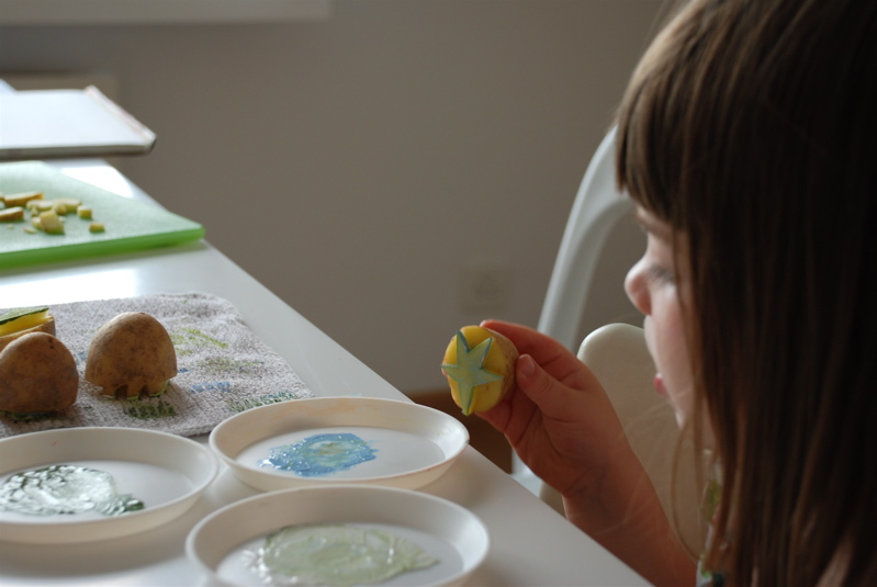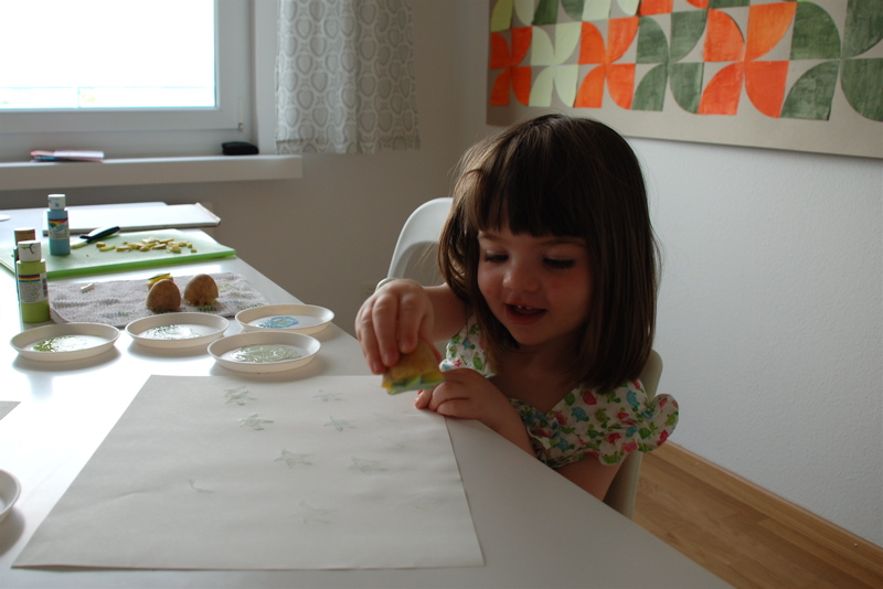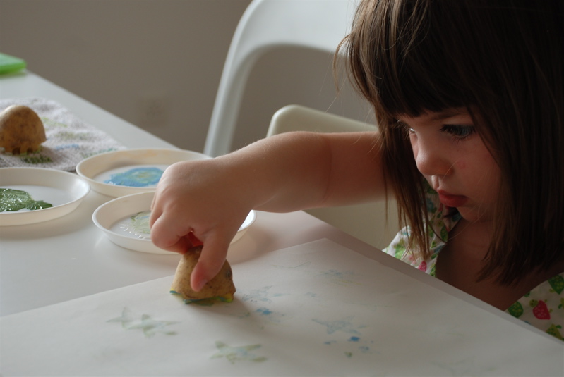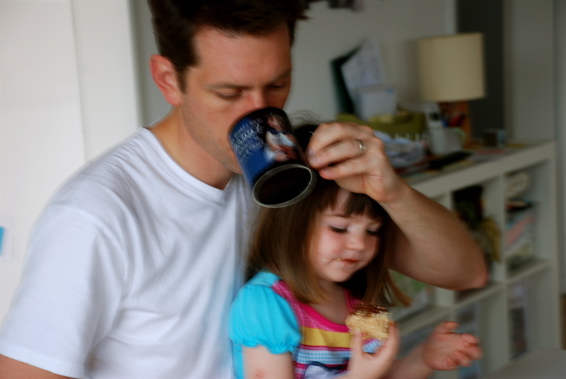 Duh – that was stupid of me wasn’t it – getting the weekend of Father’s Day totally wrong. I’m thankful I mistook the weekend before instead of the weekend after at least. Here’s Bea making a potato stamp card for Daddy and then there’s a photo of Bea celebrating with her Daddy. We made rice crispy treats with hearts. Bea added the sprinkles with enthusiasm. And we had a mug made with a picture of Bea and Claire – it’s becoming a tradition – a mug every year. The mug came in the mail the day before and Bea could not keep the secret. As soon as Brian got home from work she blurted out, “we have a secret, it’s a mug for you”.