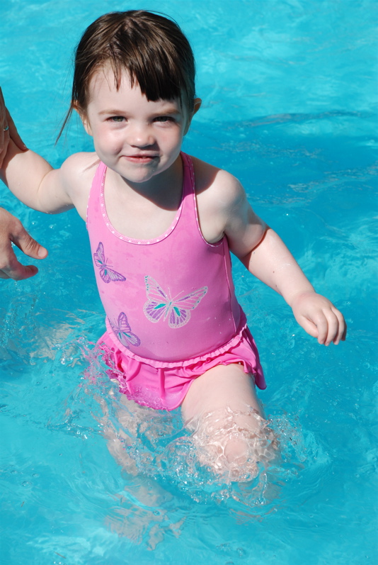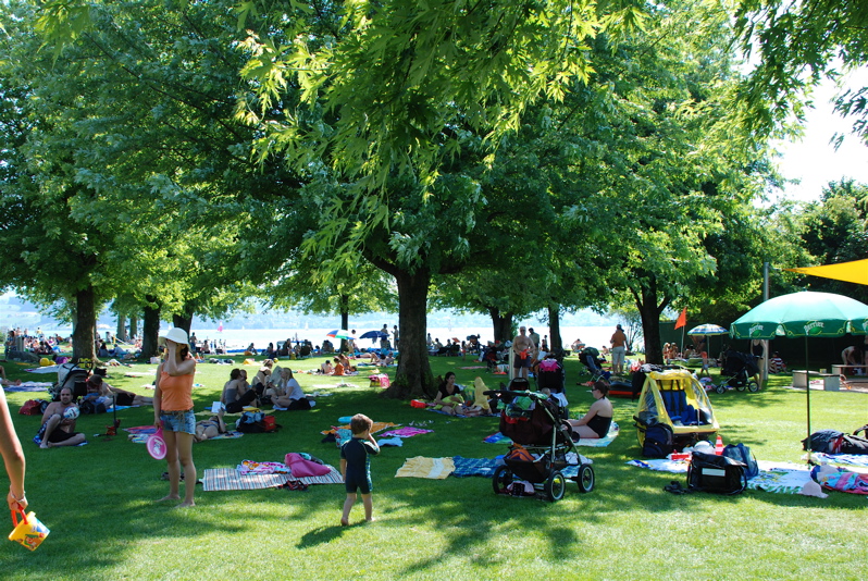 We also went to our local strand bad – it’s like a beach without the sand. They have a big grassy area where everyone lays out there towels – and there are steps down into the lake. There are plenty of shade trees which is nice when you have an infant. There’s a little cafe, a playground, barges to swim out to, water slides, a sandbox and a great kiddy pool. It’s all set up very nicely as most things around her are. And blow me over with a feather – the admission fee is cheaper than what I paid to go to the beach in Evanston. I think we’ll be spending more time there now that the weather is actually feeling summery.