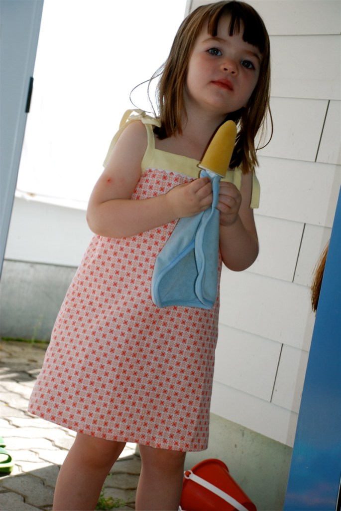 I made another Popover Sundress from Oliver + S. This time I let her pick out the fabric. She completely surprised me by giving me a big hug as soon as she tried it on. Wow.