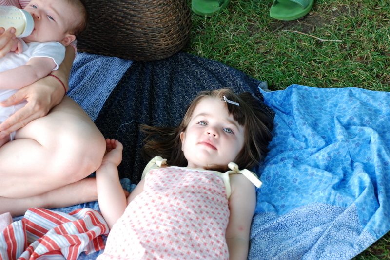 Also… are you noticing a trend? Bea in a pink dress for several weeks. Bea in a blue and white polka dot dress for a few weeks. Then Bea in a bumble bee dress for a couple weeks. And now she’s in her pink and yellow dress that mommy made for her period. What’s next?