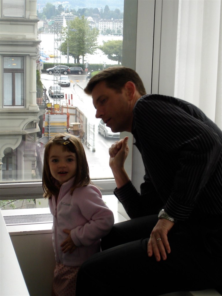 On Friday we took a boat ride into Zurich. Bea chose her outfit and she was so, so proud. We met Brian, he showed us his new office and then later we went out for dinner. A very enjoyable evening after a long week without Daddy around.