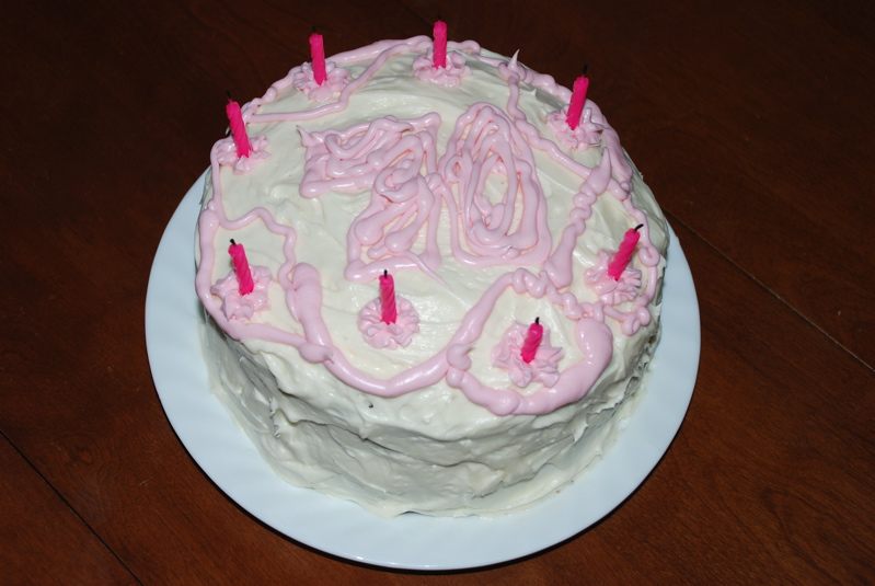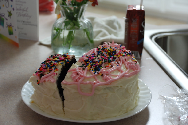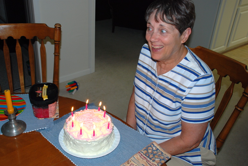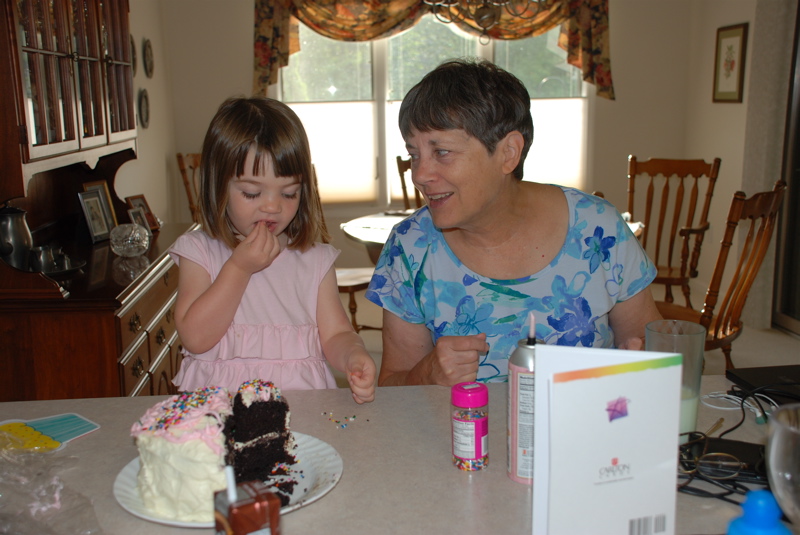 Then it was time to celebrate Grandma C’s birthday. It was NOT her 70th birthday – that was just a joke that Brian probably took too far. Despite my protests he made her a cake with a big 70 and bought her a Happy 70th card. Bea fell asleep when it was time to decorate the cake so she helped add some sprinkles in the morning. Happy Birthday Grandma.