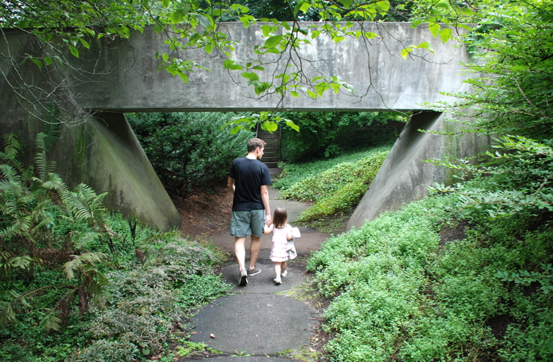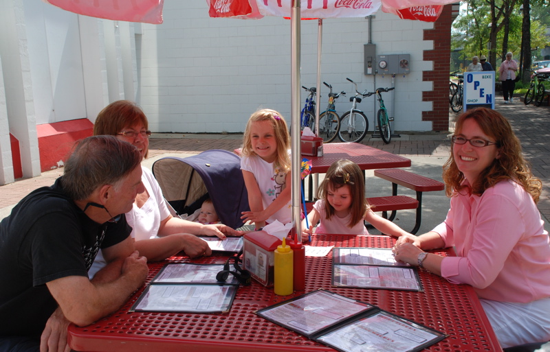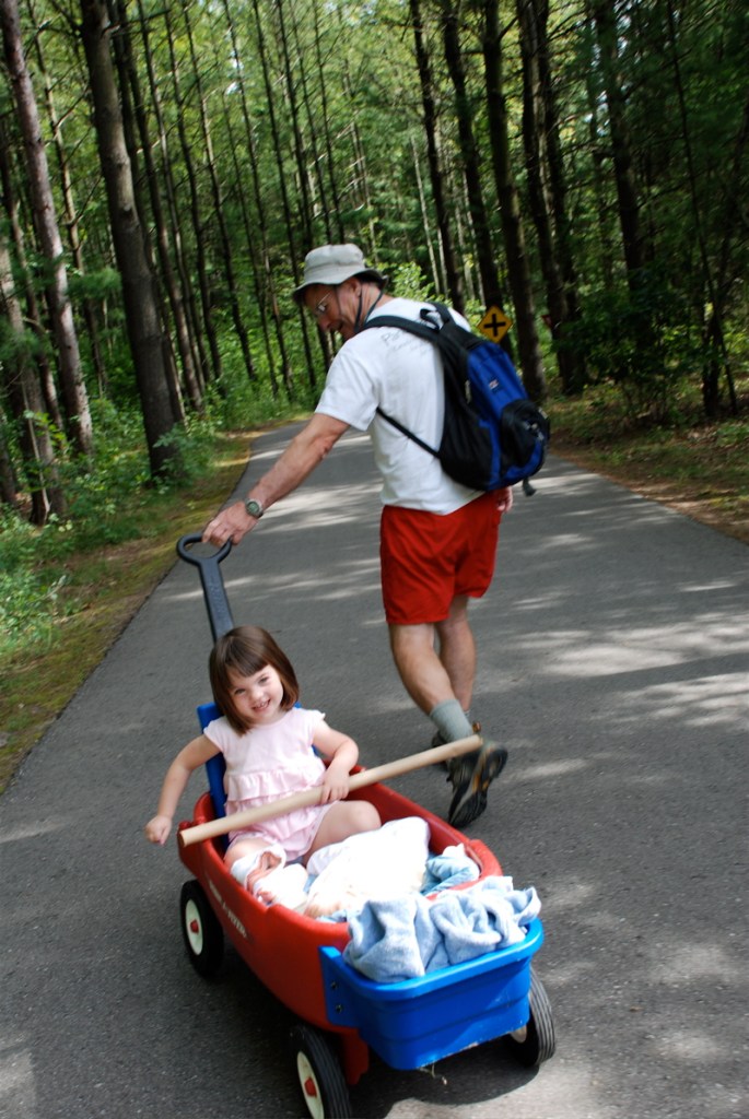 Claire got to meet her big cousin Jenna and we had lots of sunny fun with Jennifer too. We got good ol’ American hot dogs and fried pickles in downtown Midland. Bea got to play with all her old favorite toys at Grandma J’s. And we had a walk through the woods with Grandpa J.