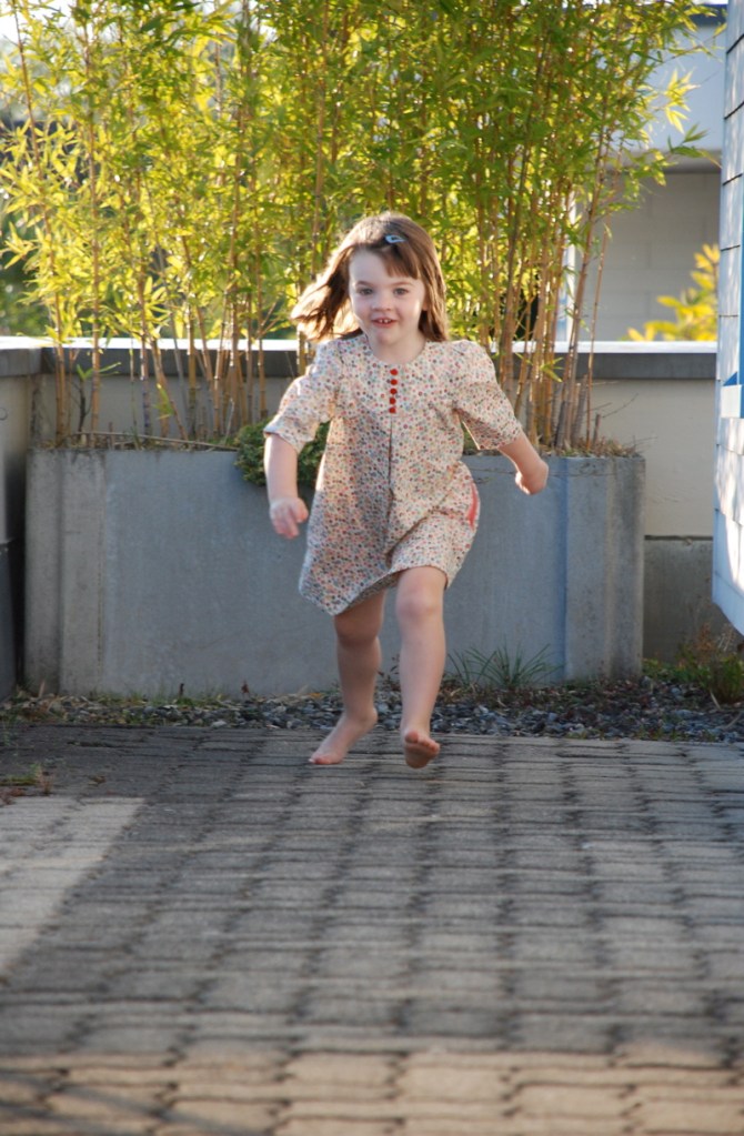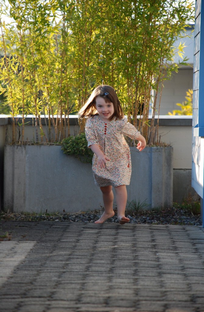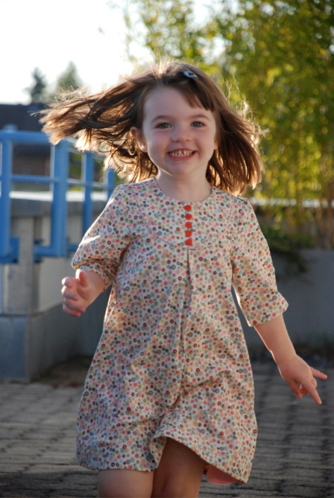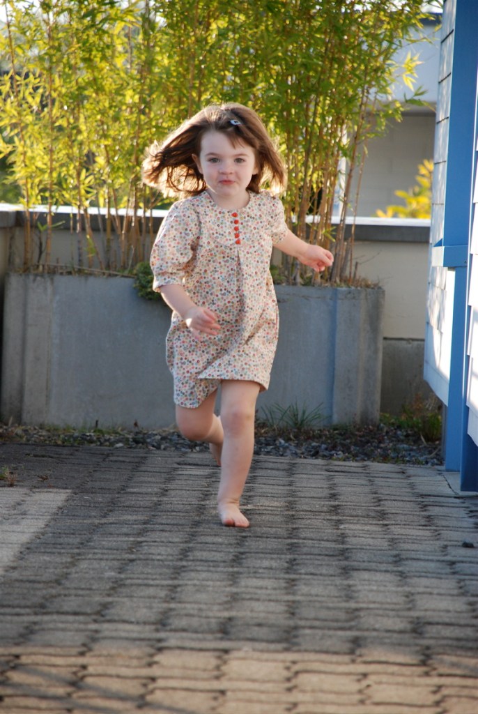 It’s a new and rare moment when Bea agrees to have her picture taken. After I finished making a dress for her today she was inspired to run around in it. Knock on wood… I feel like we might be getting over the hump of adjusting to being a big sister and dealing with some other typical three-year-old issues. And I’m noticing little hints of confidence that energize us all.