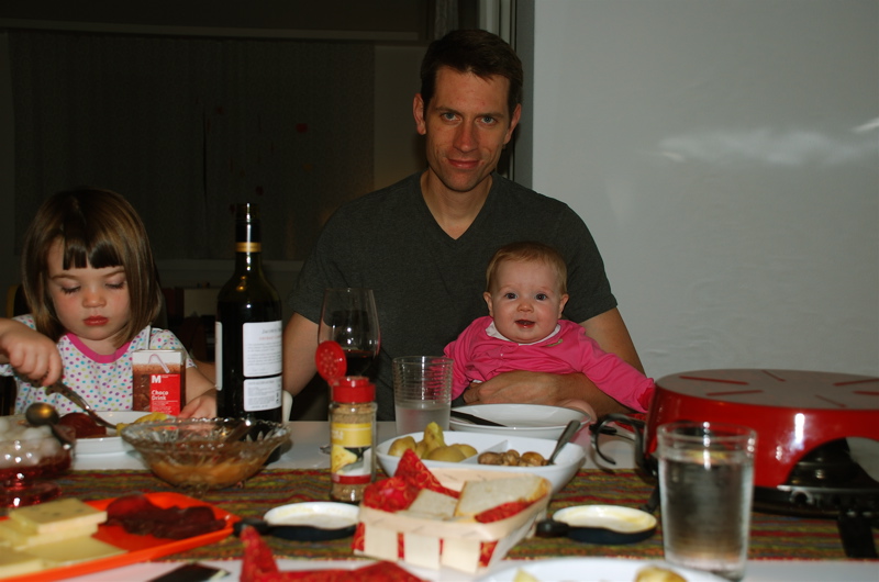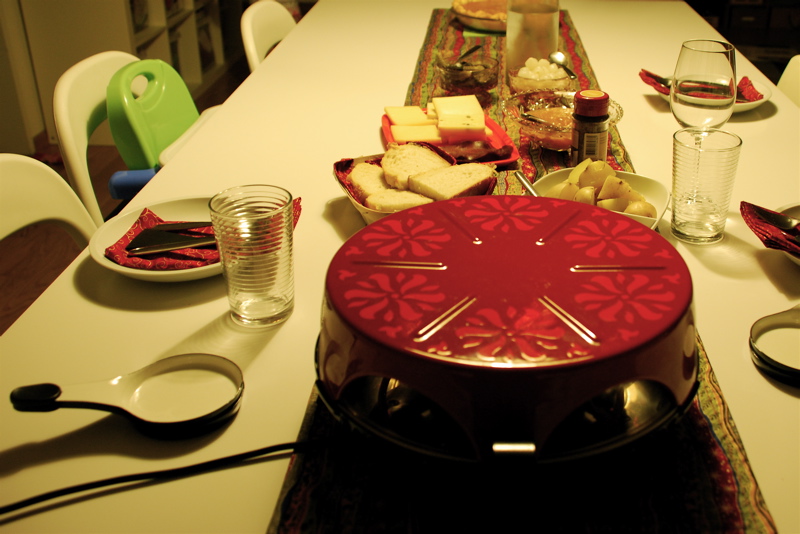 The raclette maker is an early Christmas gift for Brian. He loooooves melted cheese. And our Bea has come a long way from being pouty about the fact that they don’t sell orange cheese in Switzerland. She ate the raclette cheese right up. Yes, we are so very proud when our daughter eats a whole meal of cheese. The only thing that would make her meal more complete would be some Swiss chocolate.