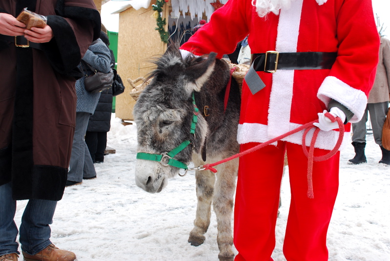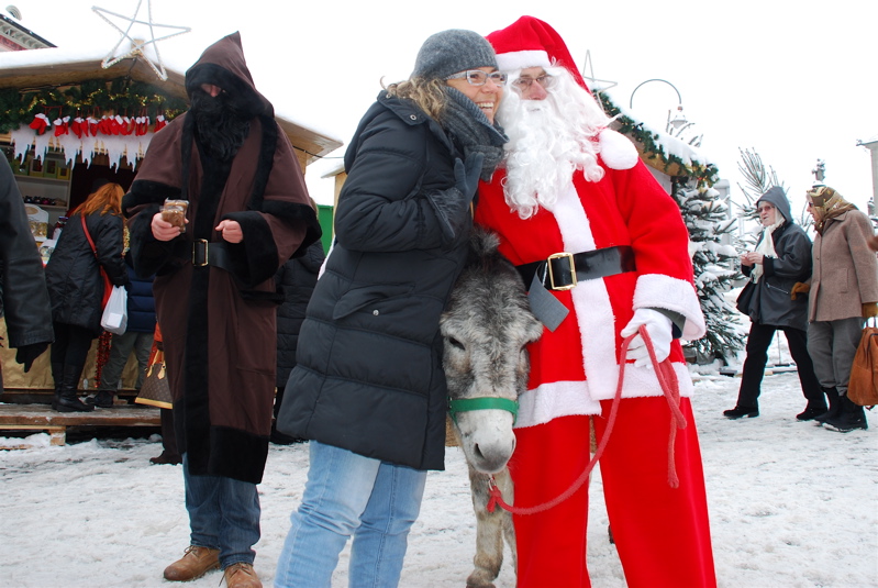 Check out the scary guy hanging around Santa – it’s Schmutzli. Schmutzli is Santa’s side-kick that lectures the kids. Apparently in the past he would put kids in a sack and kidnap them. I guess they try to scare kids into behaving here, while we are used to bribing them with the promise of gifts. I’m still learning about the Swiss Christmas traditions and how it all happens – you can read about Swiss Santa (Samichlaus) here.