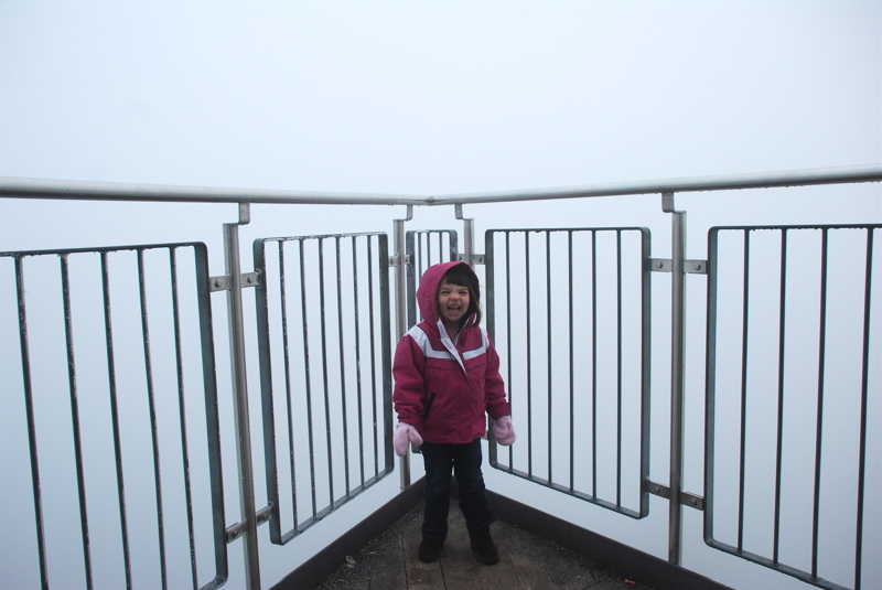 On New Year’s day we went to a place high above Zurich for a little hike. Bea and Brian climbed the big tower – up up up into the fog.