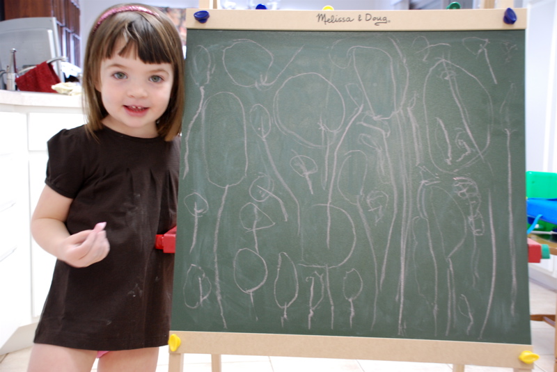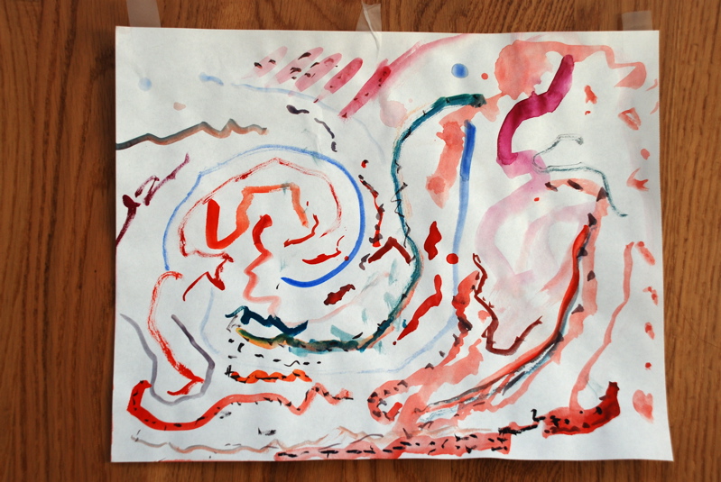 Here’s another bit of artwork that she made back at Gramma and Grandpa C.’s. I think they are jelly fish.