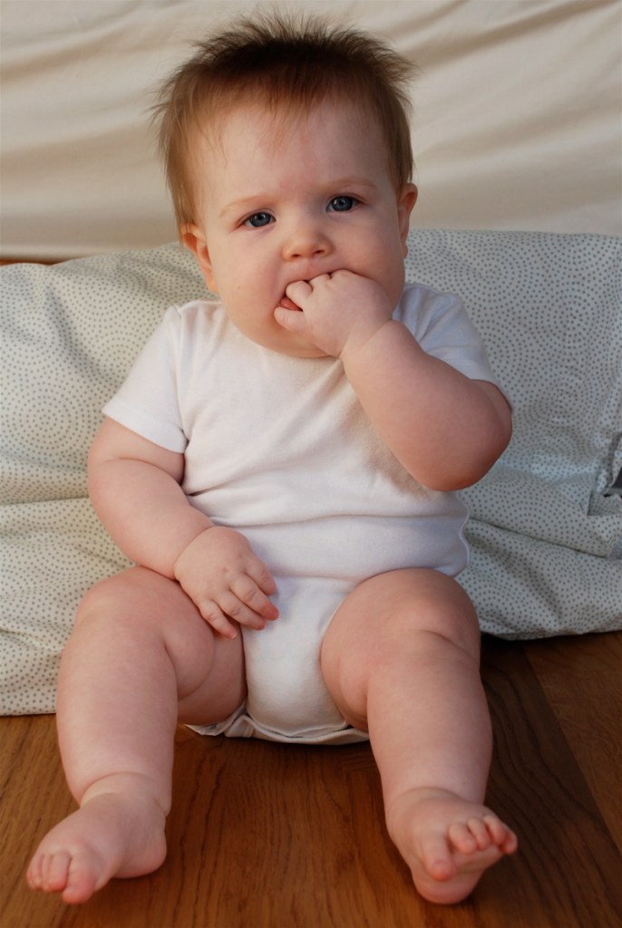 – She can scoot around on the floor a bit now – but she only moves backwards. She hasn’t really gotten her legs under her for crawling quite yet.