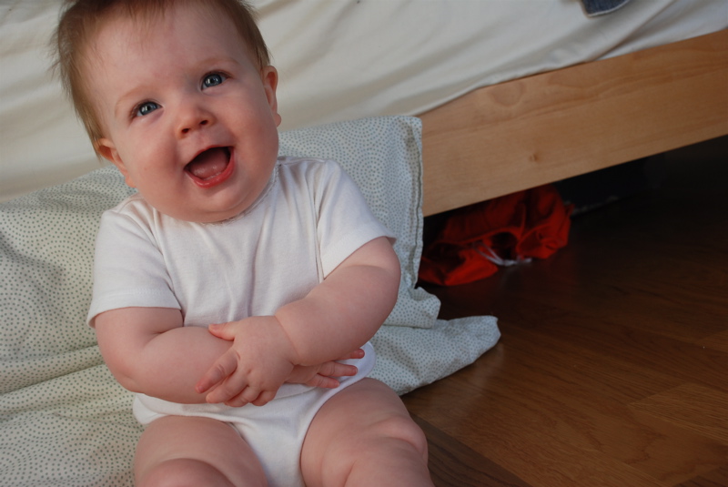 – She is so quick to smile and laugh. Often she’ll spontaneously start giggling when I’m pushing her in the stroller, as if I said something really funny.