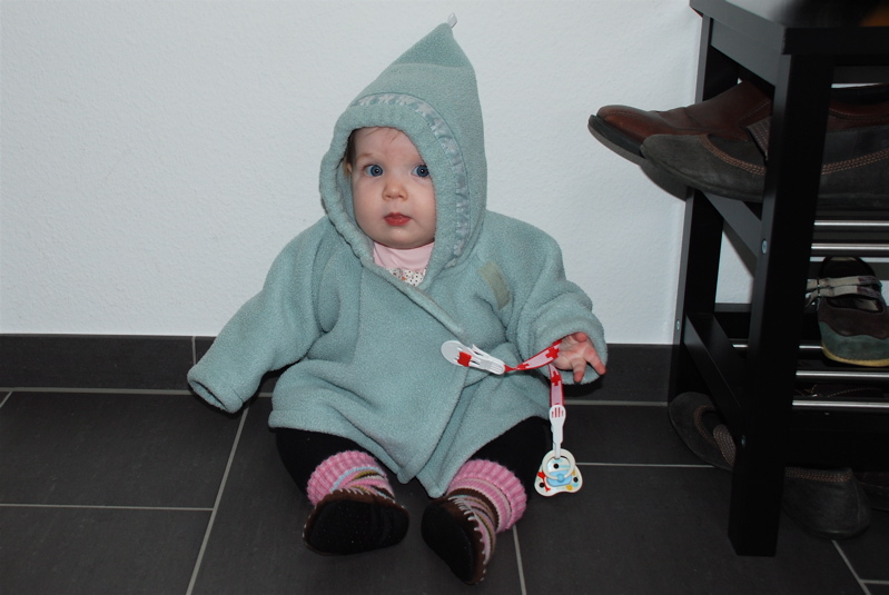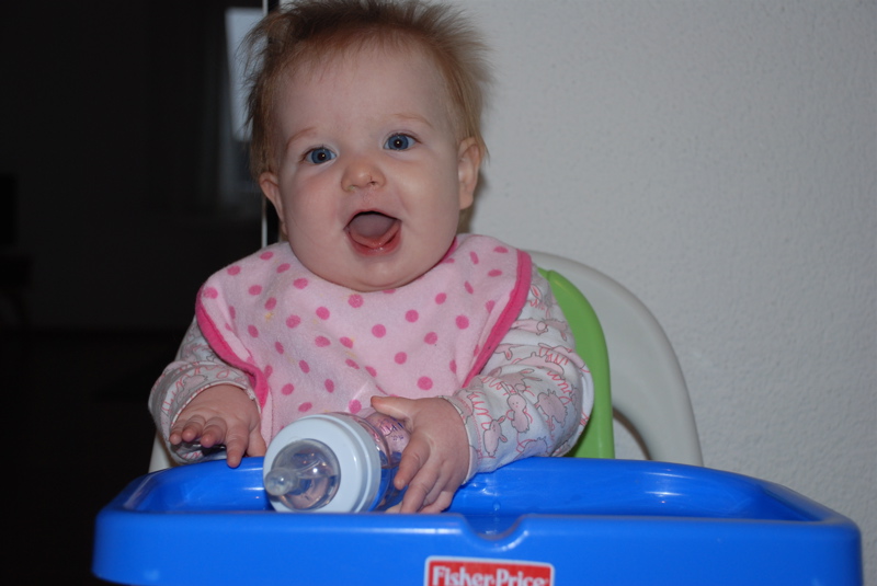 – She’s at that stage where I can set her down on the floor wherever I am and I know that she won’t crawl away. It’s nice to be able to put her next to the washer and do a little laundry, set her by the door when we are putting coats and shoes on or put her on the floor of the bathroom while I brush my teeth.