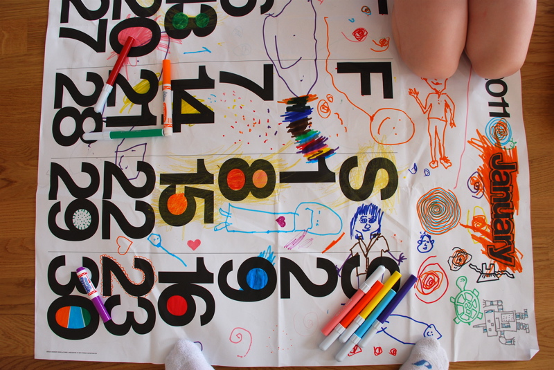 We always draw on the big calendar page after we take Claire’s picture on it.