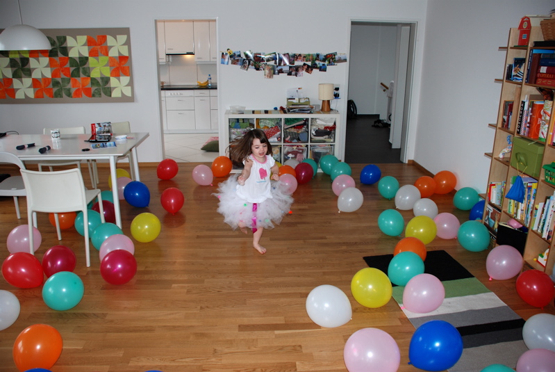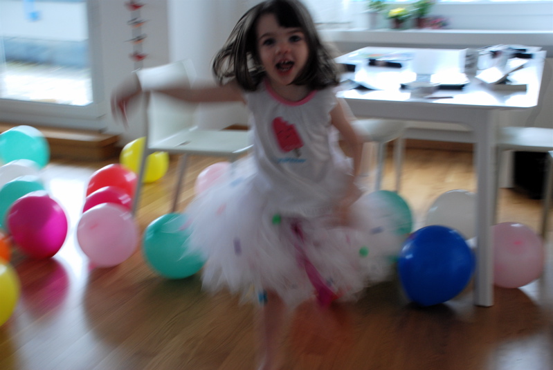 The balloons migrated to the living room and then she danced in her tutu (a Christmas present from Aunt Jennifer).