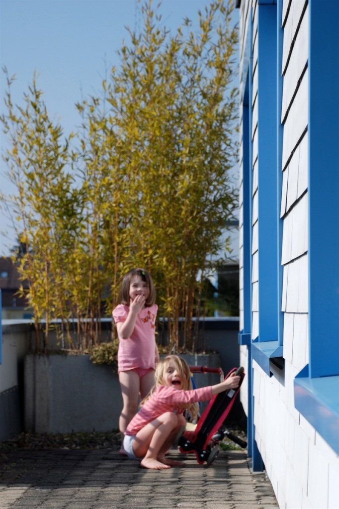 Here they are enjoying the sunny day. Jenna is getting the hang of scooter riding.