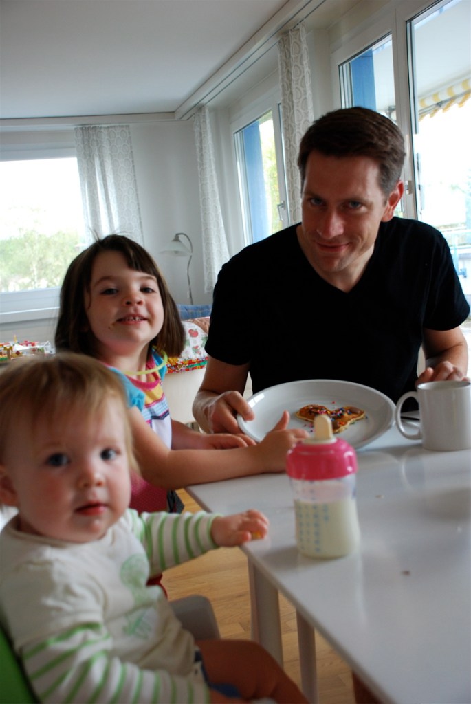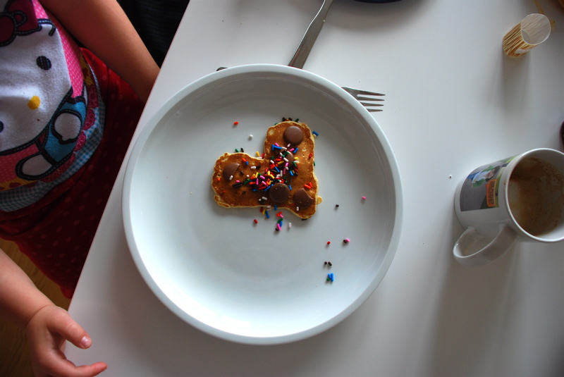 Here’s where we show Daddy how much we love him with an impromptu heart-sprinkle-chocolate-pancake.