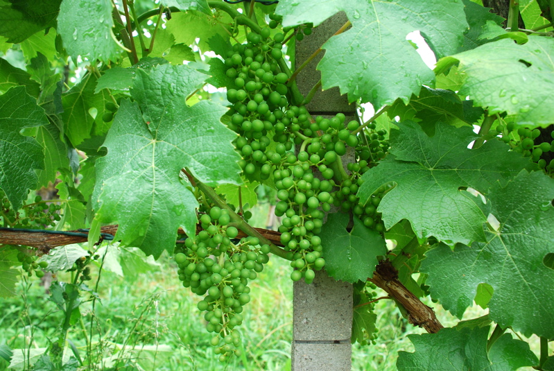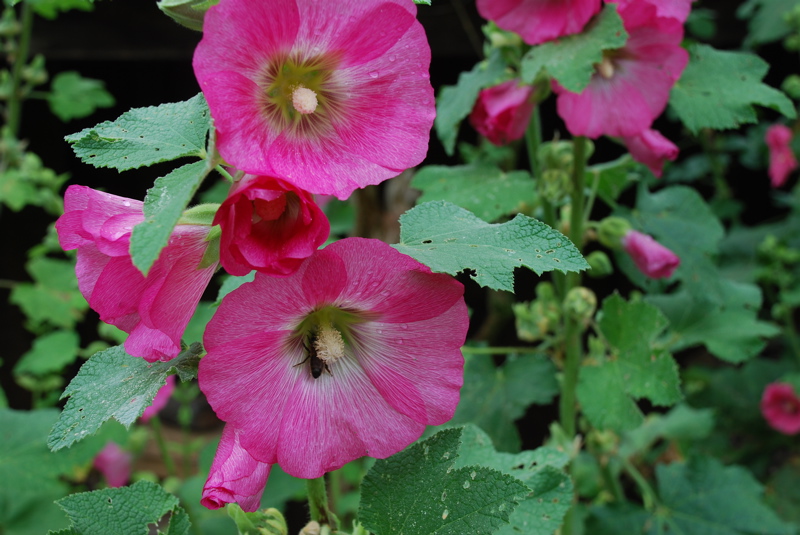 The grapes are growing. And hollyhocks too.
