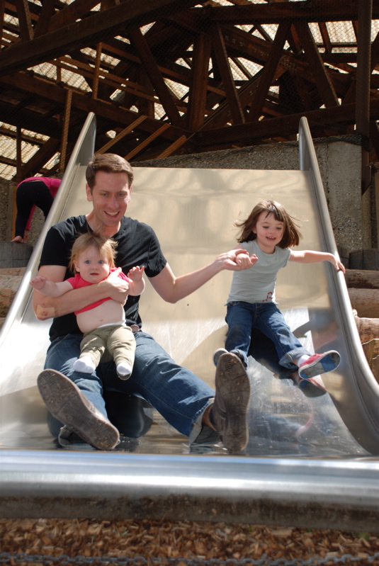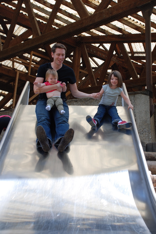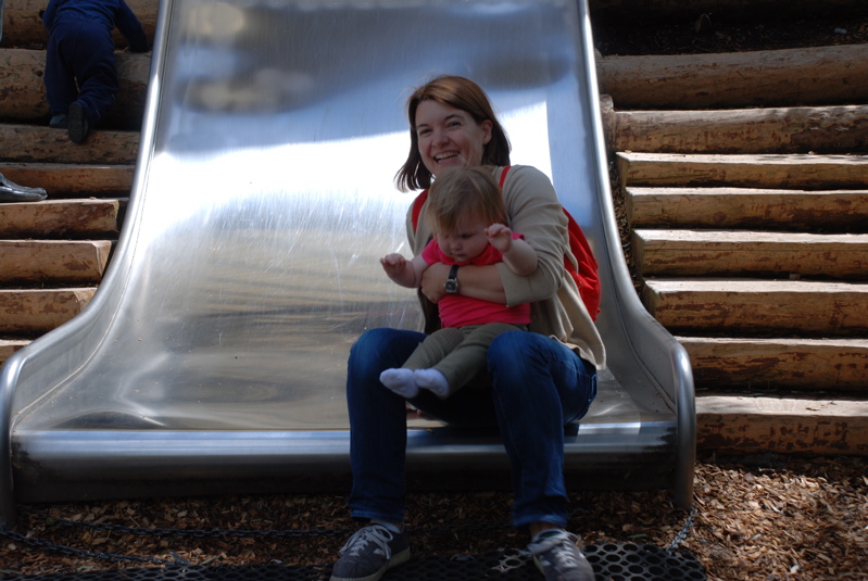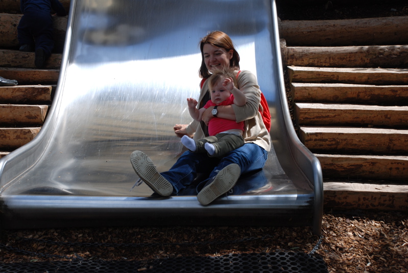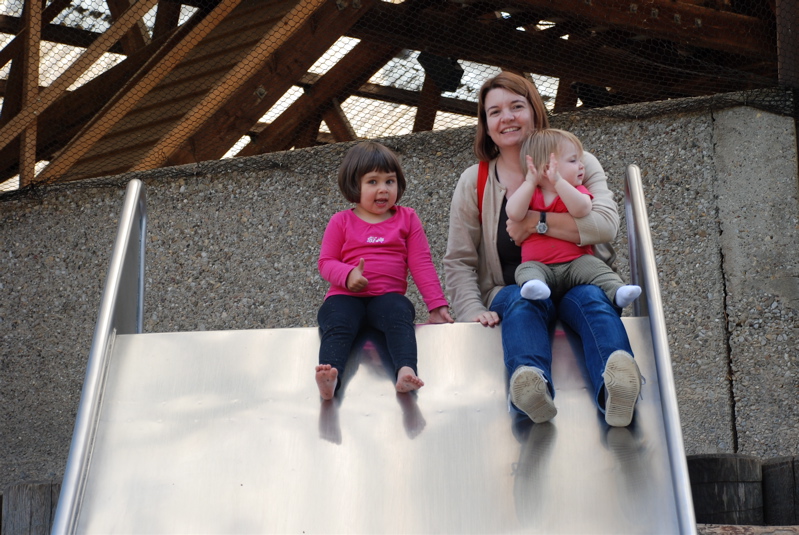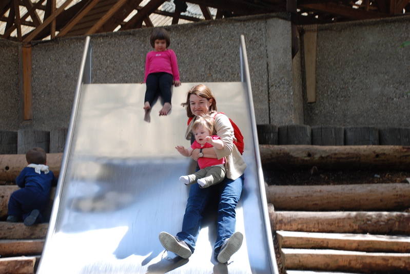 We took Brian to the Rapperswil Zoo last weekend. We spent most of our time at the playground. Here we are on one of the big slides.