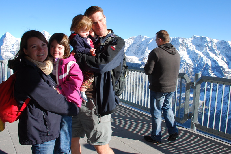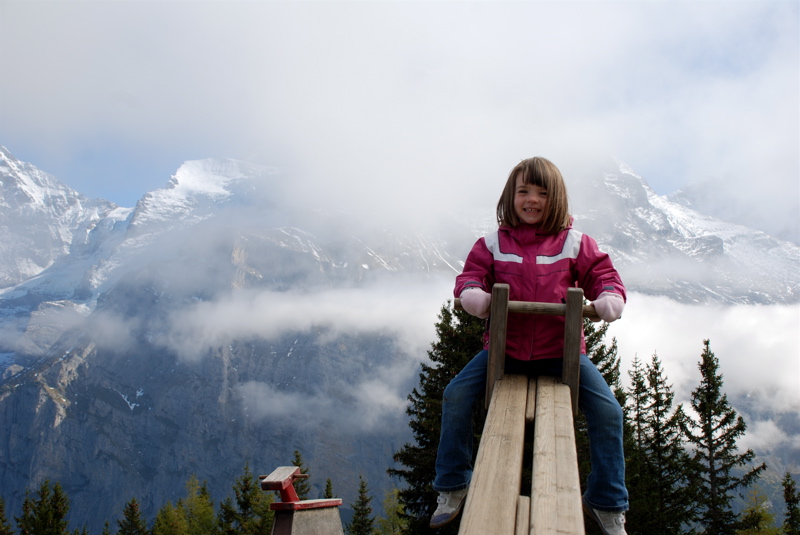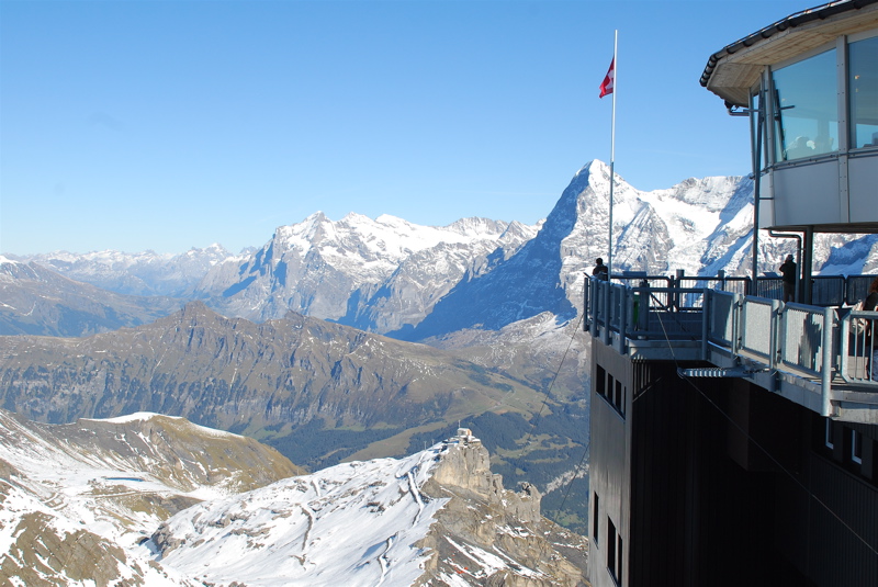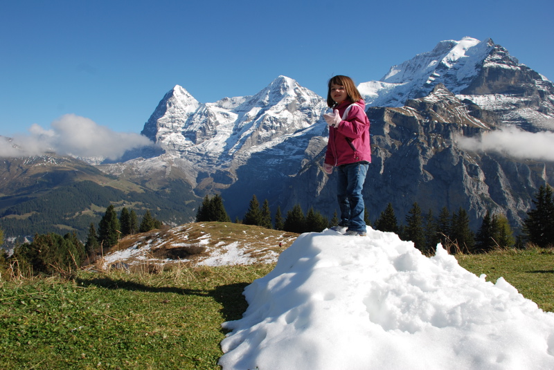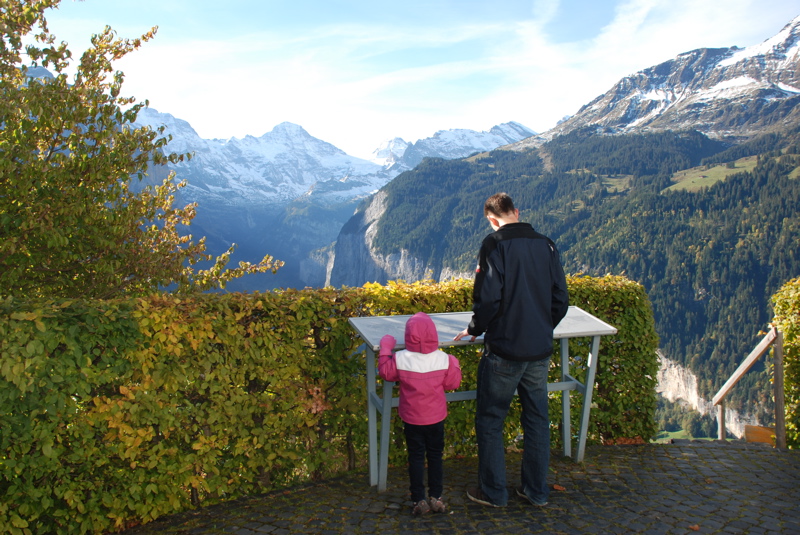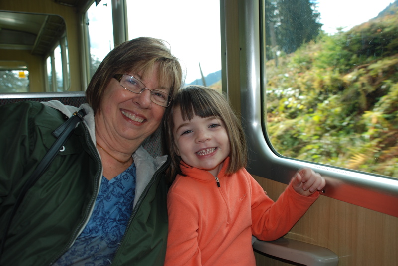 We just got back from a few days in the mountains. We saw the beautiful sights by train, by funicular and by way, way up high gondolas. I was so happy to be able to show Mom and Dad the Swiss mountains. And we really lucked out with the weather – we had chilly, but wonderfully sunny days.