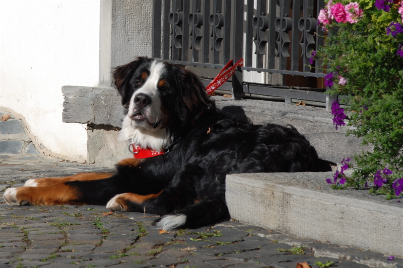 Back down closer to the ground we ran into a very friendly Bernese Mountain dog: