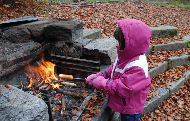 Brian took Bea for a hike and they roasted some sausages on a fire. Bea was all smiles when she got home.