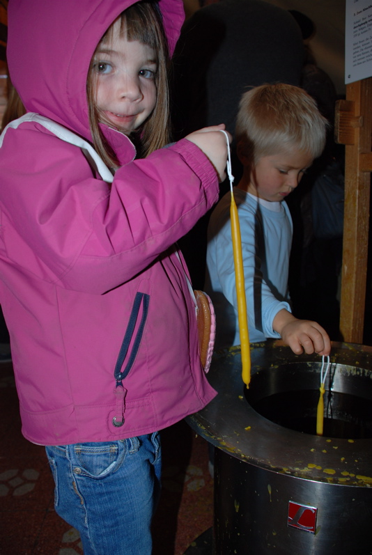Making a candle (and another strange face). It’s beeswax so it smelled so good.