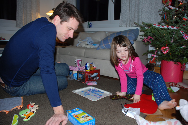 We had our Swiss Christmas last night and this morning. Right this minute the girls are blissfully entertained with new toys and Brian’s in the kitchen making bacon and eggs.
