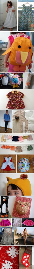 This year I made: a nightie, 3 little girl dresses, a backpack, two penguins, a bunnie, two shirts for myself, a bunch of doll clothes, 3 pinafores, two hats, a penguin costume, pajama pants, a birthday cake for a one year old, two skirts, some shorts, a dress for myself and a stocking for Claire. All with my two little hands.
