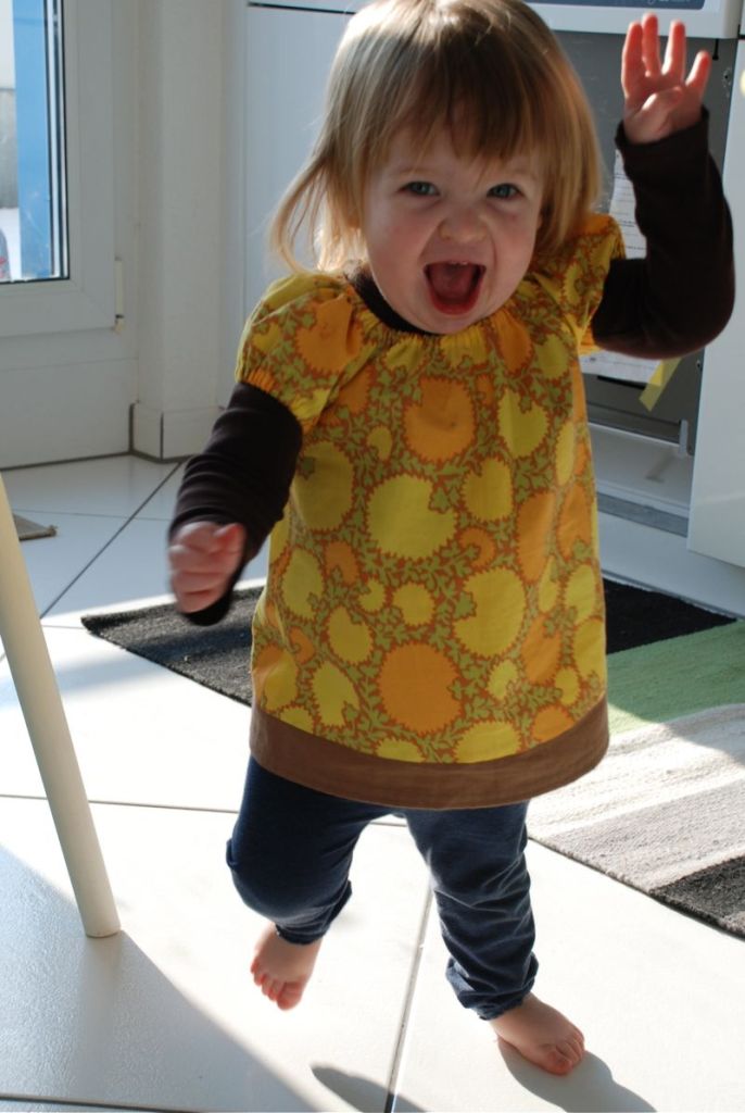 OK – I’m officially ready for spring. It’s been bitter cold here so we can hardly get out to play. We’re ready for some warmth and green. In the meantime I’ll sew some tunics for Claire. She can wear them over long sleeve shirts now and on their own when the warmth arrives. Here’s one that I made over the weekend.