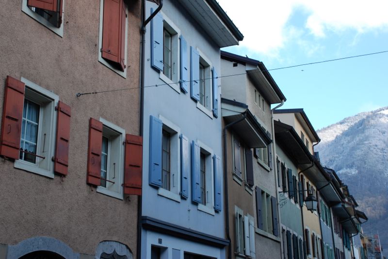 Bea is on vacation for the next two weeks. We are sort of freakish for not going skiing – in fact they call this the ski holiday. We did decide to take a little vacation though – we went to Montreux. Montreux is in Southwest Switzerland on Lake Geneva – it’s the French part of Switzerland. The mountains push right up to the Lake and the area is known for it’s mild climate. It wasn’t exactly balmy but two out of our 3 days were sunny so I won’t complain. I had fun taking photos of the architecture. I’ll post some people photos later.