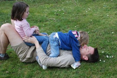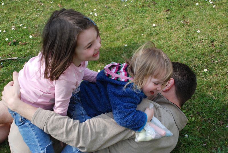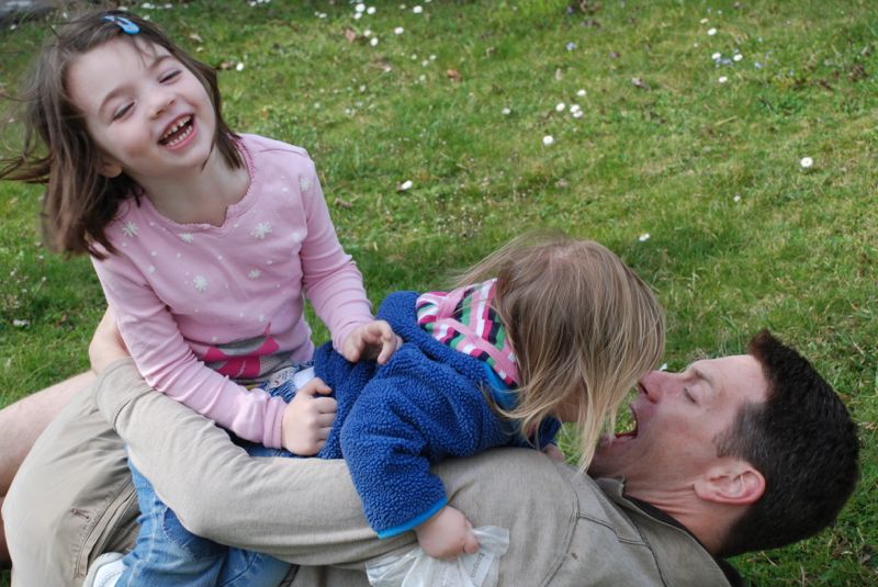 Spring is here! Time to roll around in the grass and tackle Daddy.