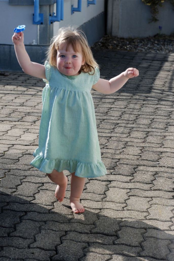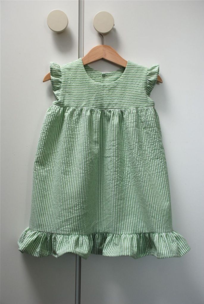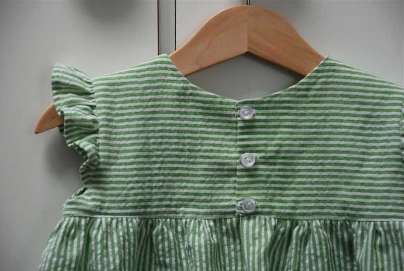 I made a dress for Claire. I think this will be her birthday dress. It’s a new pattern downloaded as a PDF here.