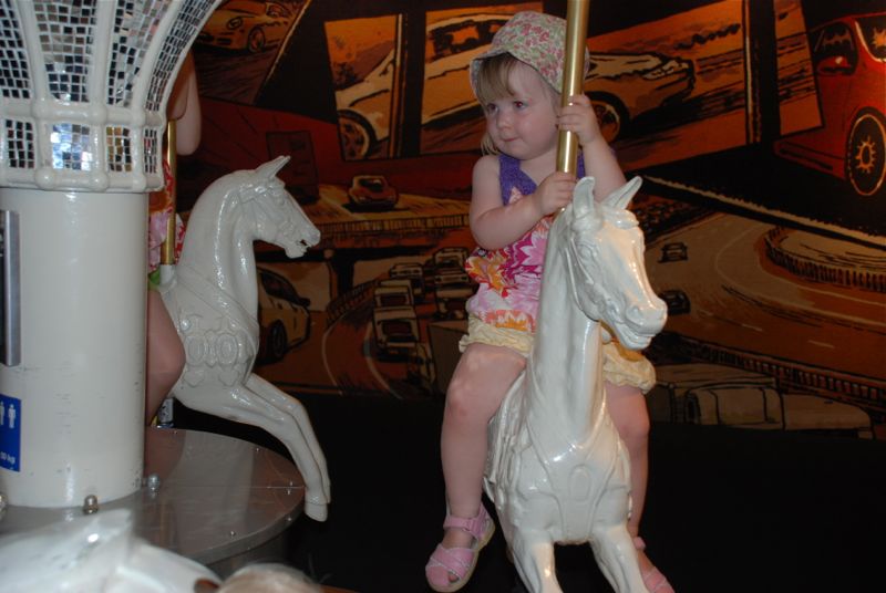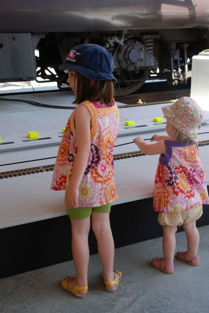 Here are a few photos from last Friday. I took the girls to the Transportation Museum in Lucern. They wore matching tops that Aunt Jennifer made for them. They were cute and they were dressed perfectly for the hot day that we had.
