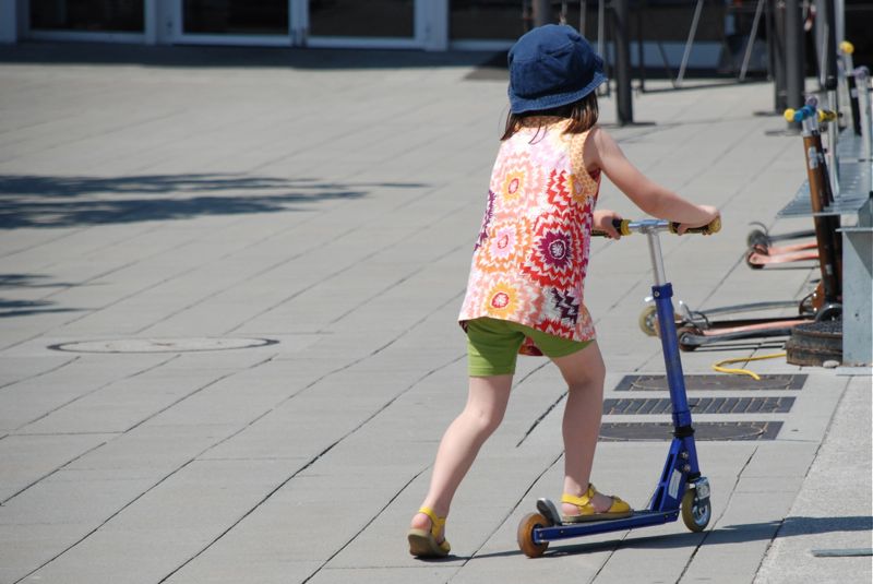 Bea is ready to graduate to a two wheel scooter. She got to try one out at the museum.