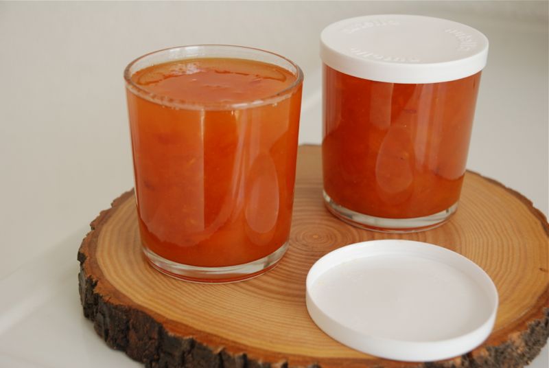 Here’s some jam that I made yesterday. Apricot jam. I always buy apricots when they are in season because they are so pretty, but then I don’t know what to do with them. I only remember how tart they are after I get them home and then they tend to sit on the counter for days and days and days…