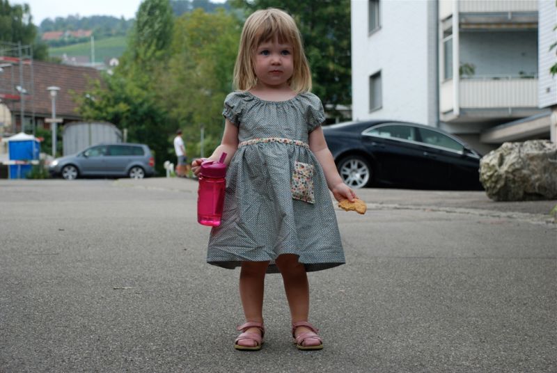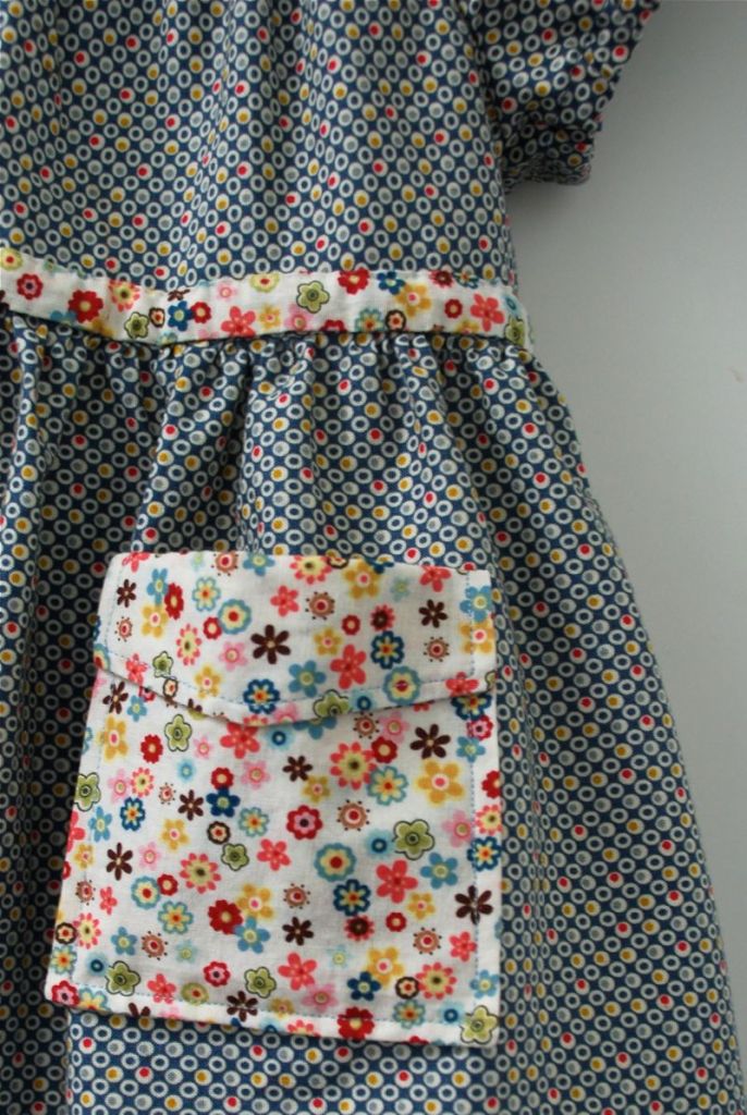 And lastly I made a dress for Claire. It’s that simple, easy peasant style pattern that I’ve used many times. I added a pocket for kitties. Ignore the wrinkles – she just had a nap: