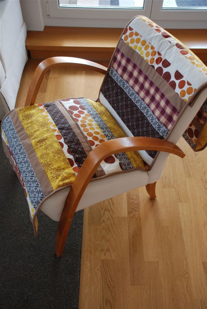 My furniture is really getting abused by my children and it shows. So I made this quilted cover thingy to cover some of the stains on my chair. I quickly pulled all the yellow and brown and cream colored fabrics that I could find. Sometimes when I go to choose fabrics for a quilt project it’s the ones that I do quickly and without agonizing that I like best. Now I need to do something for my poor couch – it’s getting embarassingly grungy.