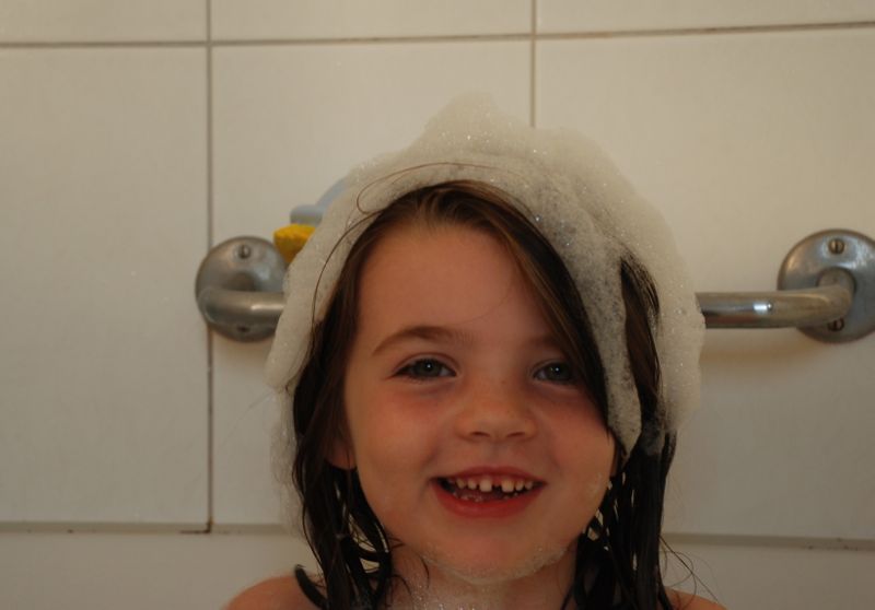 And here’s Bea with a bubble hat: