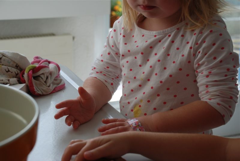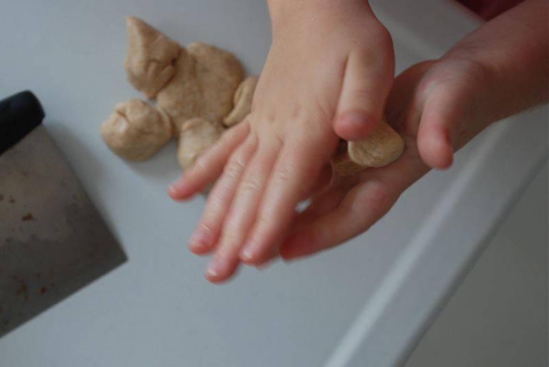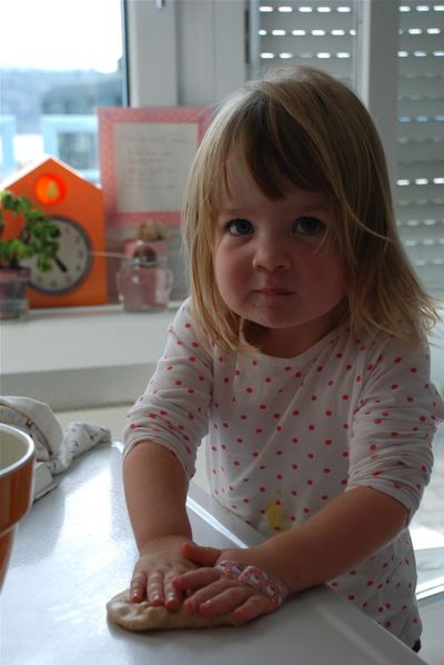 We made some bread yesterday (Fannie Farmer’s wheat bread). Later I also made some chocolate zuchini bread. Bea tried some of the chocolate bread which is really like chocolate cake after dinner. She ran into the kitchen and said “Mom, there’s someting green in my cake!” Then she begrungingly liked it even though it had vegetables in it.