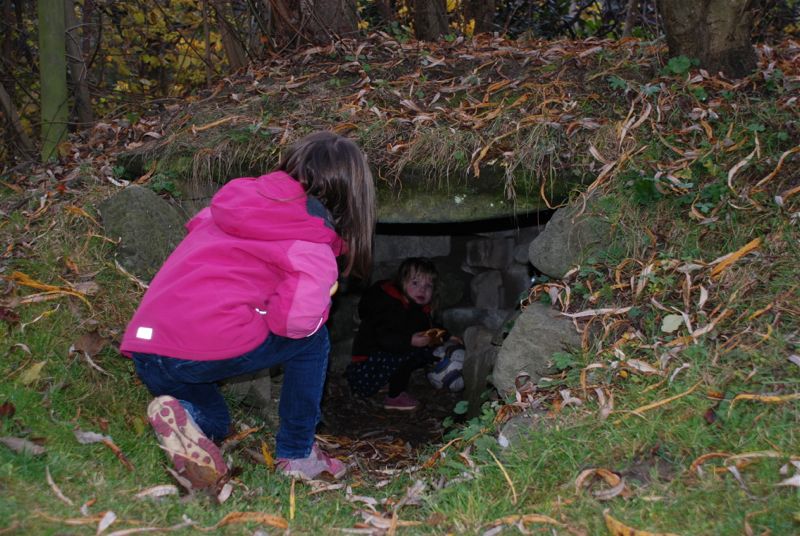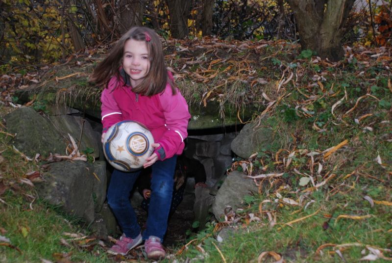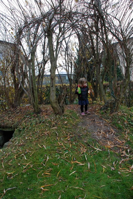 But they do have things like this cool house made out of trees. In the summer it’s much more enclosed with all the leaves. It’s built on a mound and there is a tunnel underneath. Bea is afraid to go in the tunnel – can’t blame her, it’s a dark, enclosed space – but Claire went right in to fetch a ball. She’s fearless that girl.