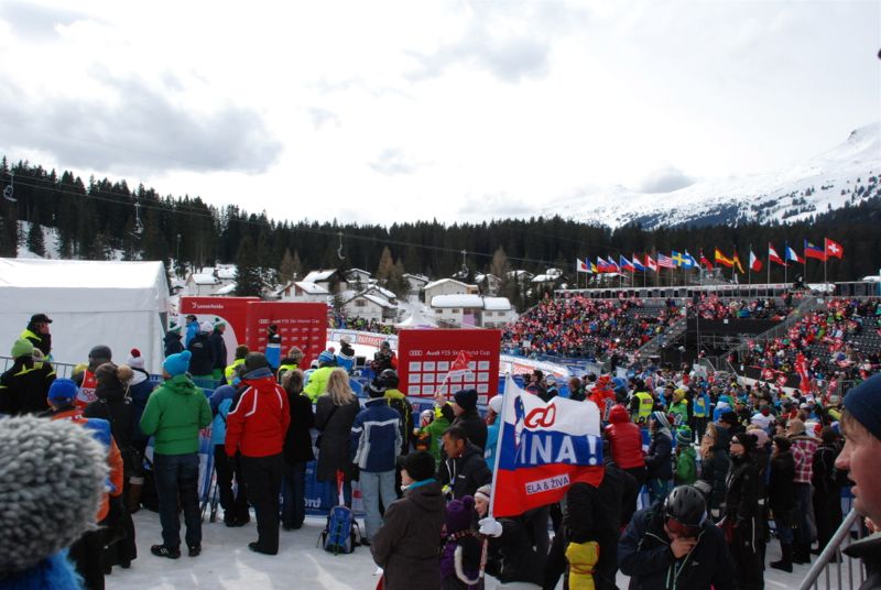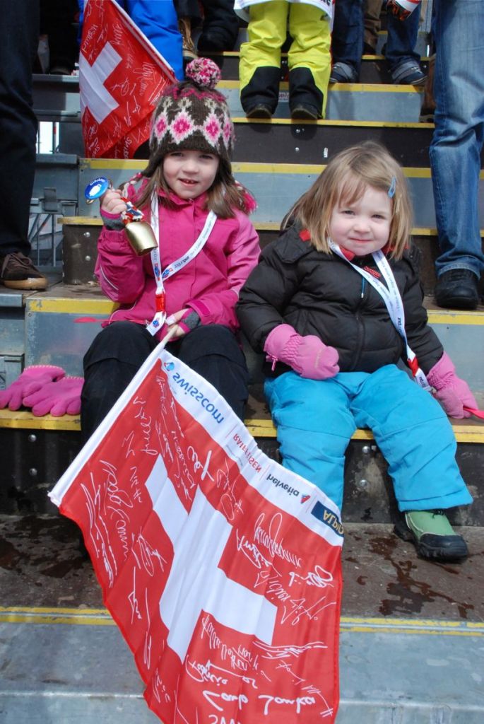 We watched the women’s giant slalom – we didn’t have a good view because we were too busy trying to get a free cow bell when we should have been scouting out a good spot. But I didn’t mind – it was a fun atmosphere.
