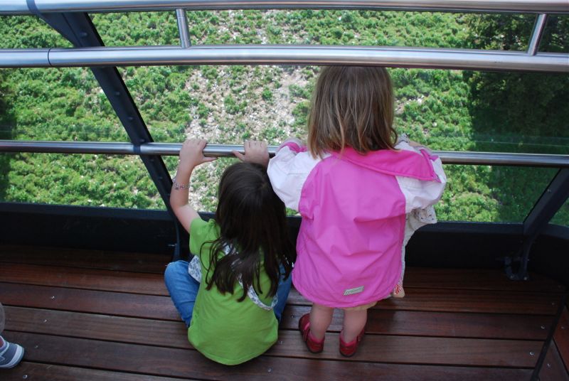 The gondola just opened a year ago. It’s the first of it’s kind – it has an open air upper deck. Poor Brian stayed downstairs but the girls and I enjoyed the ride with the wind in our hair. I thought it would be scary but it was so gentle and secure feeling – it almost felt less scary than some of the other gondolas we’ve been on.
