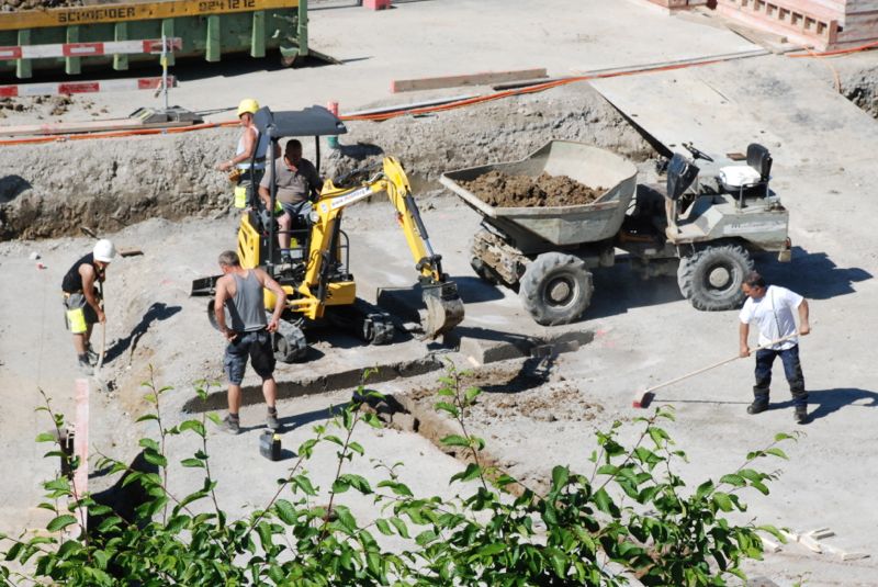 My newest hobby is watching the men working at the construction site next to our apartment. It’s nice to see a couple of them that are tanned and toned, but really I just like to check in with the progress on the building. It’s interesting – really. They put up a big crane yesterday. I think they could use it to lift the furniture out of our house on Monday.