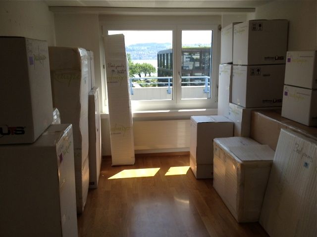 The girls and I flew to Michigan on Sunday. The movers came on Monday and packed up all our stuff. Brian will stay behind in Zurich for about six weeks – living in an empty echoing apartment.