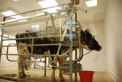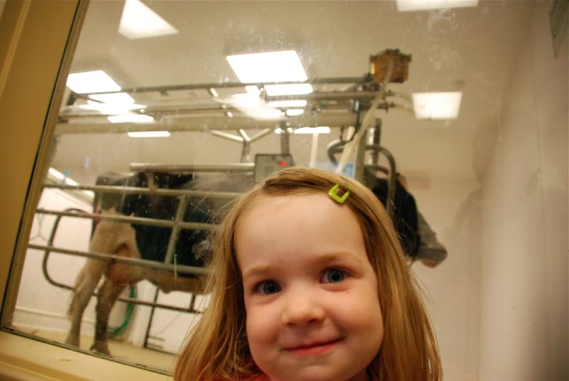 We even got to see a cow milking demonstration. Very cool – they hooked her up to the milking machine and it was super exciting to see the milk running through the tubes.
