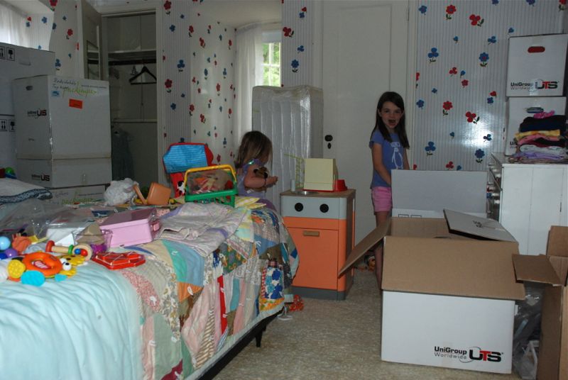 Here’s a photo of the girls just moments after we started opening boxes of toys in Claire’s room: