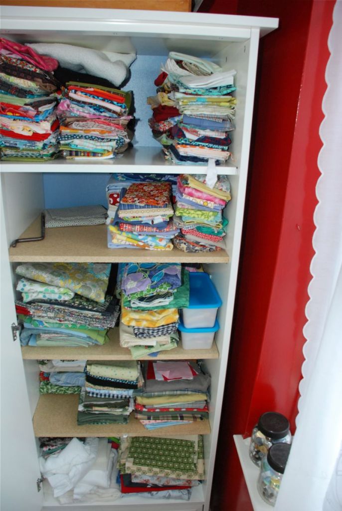 I did feel good when I got my fabric stash all stacked up in it’s new home. I cannot wait to paint over the shiney red walls in my sewing room. Red Room, Red Rum, Red Room. They’re frightning!