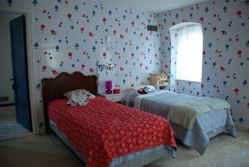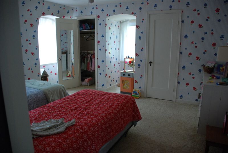 Here are Bea and Claire’s rooms right now. I can’t wait to take some of that wall paper down and do a hundred other things to make the rooms more our own. I’m working on a headboard for Claire. I found an old Jenny Lind style bed that I’m repainting. She asked for purple (my least favorite color) and she’s getting purple because I want her to love her room a little more. It’s taking me a while to sand and paint all those fussy spindles, but I am really enjoying having a garage to do messy projects. That brown headboard was only 27 bucks at the antique mall in Bay City. I’m trying to decide if I should paint it so it will match the Jenny Lind bed or just leave the wood, which is in great condition.