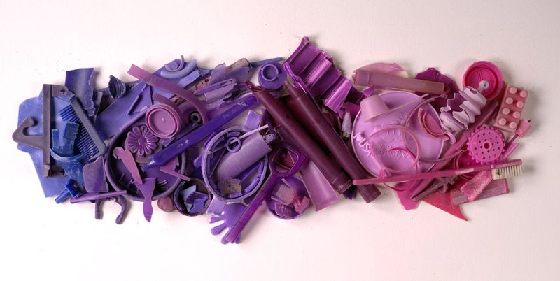 Here’s our inspiration – beautiful artwork made from plastic garbage washed up onto a beach*: