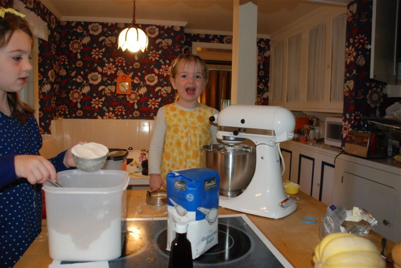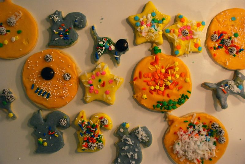 Look at that excitment. The girls were bouncing off the walls all morning before my Mom and Dad came last weekend. We made some cookie dough that morning and then decorated them later with Grandma.